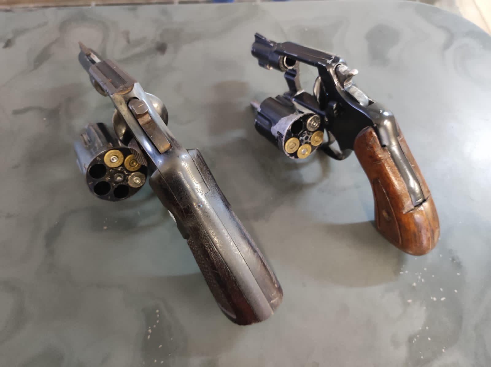 No local foram apreendidas duas armas de fogo com as numerações suprimidas. Foi feito contato com uma testemunha que afirmou ter visto o autor apontar a arma para a vítima e ao tentar uma reação para impedir a agressão na mulher o autor efetuo um disparo em sua direção.