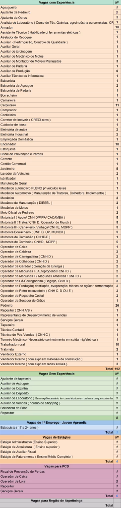Confira a lista completa de oportunidades disponíveis: